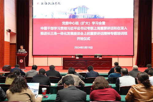 3月19日下午,我校在中国-上合司法培训基地举行中层干部学习贯彻习近平总书记考察上海重要讲话和在深入推进长三角一体化发展座谈会上的重要讲话精神专题培训班开班仪式。校党委书记葛卫华出席开班仪式并作动员讲话,党委组织部统战部主要负责人刘志强主持开班仪式。