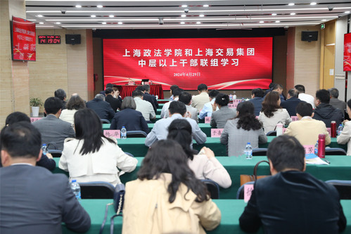 4月29日下午,学校在上海交易集团有限公司举行党委中心组(扩大)现场学习会暨中层干部学习贯彻习近平总书记考察上海重要讲话和在深入推进长三角一体化发展座谈会上的重要讲话精神专题培训班专题报告辅导会。著名经济学家、上海财经大学校长刘元春教授应邀作“深刻领会习近平总书记关于全面深化改革开放重大部署 充分激发高质量发展的强劲动力”专题报告(上海政法学院名家讲坛第169讲)。学校党委书记葛卫华主持学习会,党委副书记、校长刘晓红等领导班子成员,上海交易集团有限公司党委副书记、总裁管小军,党委副书记朱华等领导班子成员,以及双方单位中层干部参加学习。