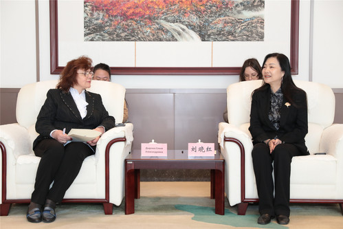 2025年3月18日上午,俄罗斯联邦政府直属财经大学副校长叶琳娜·迪登科率团访问上海政法学院,旨在深化两校在教育与司法培训领域的战略合作。校党委副书记、校长、中国—上海合作组织国际司法交流合作培训基地(下简称“中国—上合司法培训基地”)办公室主任刘晓红,校党委常委、副校长、中国—上合司法培训基地办公室常务副主任罗立刚共同会见了代表团,并就双方合作前景展开深入交流。