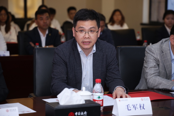毛军权详细介绍了中行班的建设发展情况。他指出,中行班已成为学校人才培养的特色品牌,不仅是一个学习平台,更是连接校园与职场的桥梁。未来将持续深化校企合作内涵,在课程优化、实践拓展、国际化布局等方面发力,助力学员成长为新时代金融领域的栋梁之才。