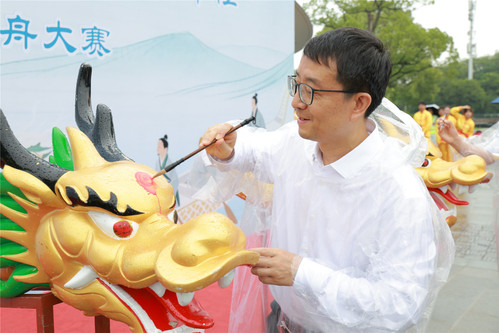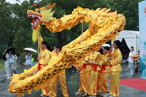 开幕式在气势恢宏的舞龙表演中拉开帷幕。金龙翻腾,鼓点激昂,舞龙队员以矫健的身姿完成“采青祈福”,为赛事增添了浓厚的传统文化色彩。21支参赛队伍精神抖擞,列阵湖畔,展现出昂扬的斗志与团队风采。葛卫华等校领导共同为龙舟点睛,以传统仪式祈愿赛事圆满成功,并寄语师生:“以龙舟精神勇攀高峰,以协作之力共绘上政新篇!”