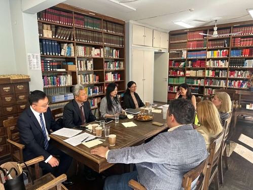 在希腊国际法与外国法研究所,所长Anna Mantakou女士一行热情接待了我校代表团。双方围绕国际法、比较法及外国法体系研究展开深入交流,就开展国际学术研讨会、交流专家咨询意见、推动国际民商事诉讼程序研究等达成合作意向,并聚焦涉外法治人才培养、国际商事仲裁与调解实务培训项目的合作开发交换了意见。