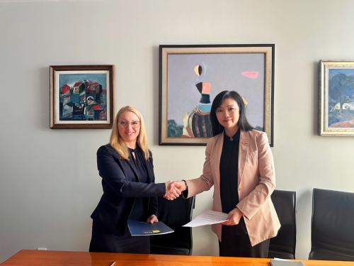 在保加利亚,代表团应邀访问保加利亚金融与保险大学,该校校长Boris Velchev、学术总监Mariela Deliverska教授及相关院系负责人等出席交流活动。双方正式签署合作备忘录,并分别介绍了各自学校的发展特色。双方重点就经济金融法律等领域开展联合培养项目、开拓国际教育项目、学术期刊合作交流、教学资源共享等方面开展深入交流,一致表示将共同推进人文社科领域的师生交流合作,促进两校师生的互访与交流。