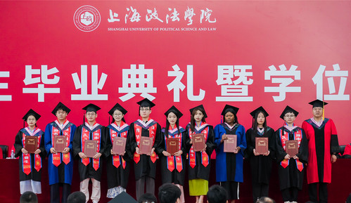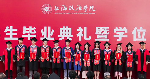 党委常委、副校长罗立刚,党委常委、副校长毛军权为上海市优秀毕业生代表、上海政法学院优秀毕业生代表颁发优秀毕业生证书。