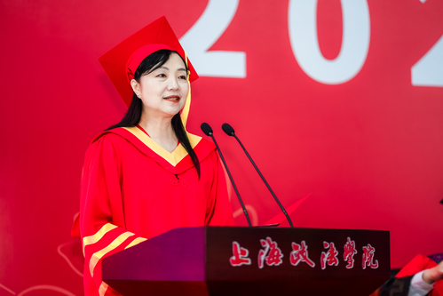 刘晓红以“书芳华答卷,铸青春担当,做‘强国有我’的追光者”为主题,为全体毕业生上“最后一课”。路虽远,行则将至;事虽难,做则必成。她表示,身处新时代的上政学子应当坚定理想信念,以“功成有我”的使命感勇挑重担;练就过硬本领,以“只争朝夕”的紧迫感攻坚克难;厚植家国情怀,以“舍我其谁”的担当感矢志奉献。希望2025届毕业生将青春担当化作时代浪潮中最激昂的浪花,在实现民族复兴的赛道上奋力奔跑。刘校长的寄语久久回荡,点燃了在场的每一位毕业生的壮志与豪情,他们将带着这份澎湃的热忱,在法治建设的道路上步履铿锵,以青春之我、奋斗之我,在时代的舞台上镌刻属于上政人的荣耀印记。
