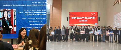 校党委副书记、校长、中国—上合司法培训基地办公室主任刘晓红以“中国涉外法治建设的探索与实践”为主题,向学员剖析了涉外法治在中国参与全球治理、化解外部风险方面的重要作用,介绍了中国涉外法治建设的历史,以及中国在法律体系完善、法治实践创新、国际法律合作等方面所做的努力,阐述了上海在立法、执法、法律服务、优化营商环境、涉外法治人才培养等领域的理论突破与实务创新。刘晓红期望“尚合青年”凝聚合作共识,勇于探索担当,助力推动国际法律合作交流,携手构建人类命运共同体。在实践教学环节,学员们走进虹桥国际中央法务区,考察其作为国家级法治创新示范区的战略布局,观摩了国际仲裁机构、涉外律所集群与司法服务新平台构成的“法律服务生态圈”,切实感受到中国涉外法律服务体系的专业化与数字化成果,以及中国在维护国家法律主权、推动国际规则互鉴中的实践智慧。
