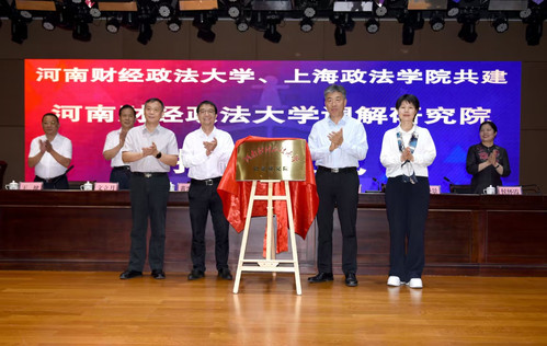 为进一步探索调解理论与实践的联动,上海政法学院与河南财经政法大学签署合作共建协议,共建河南财经政法大学调解研究院。葛卫华、黄兴士、司林胜与河南财经政法大学副校长陈晓景共同为调解研究院揭牌。司林胜还向上海政法学院调解学院院长侯怀霞颁发了名誉院长聘书,标志着两校在调解领域的深度合作正式启动。