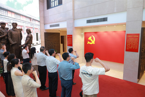 会前,葛卫华一行在讲解员引导下参观了中共二大会址纪念馆。在序厅,全体人员面向党旗重温入党誓词,庄严的誓言彰显了共产党员的坚定信念。
