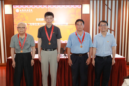 会上,葛卫华为老党员代表曹光裕、刘建胜、王毓明颁发“光荣在党50年”纪念章。高志刚为学校第三批党建工作“标杆学院”“样板支部”正式挂牌单位授牌,并为市教卫党委系统党建研究会高校专委会课题优秀成果颁奖。