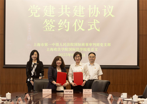 为深入贯彻落实党中央关于加强涉外法治建设的决策部署,以高质量党建引领高水平法治人才培养,近日,上海政法学院国际法学院(国际仲裁学院)与上海国际商事法庭举行党建共建签约暨实践教学基地揭牌仪式,同步启动“双师互聘”协同育人计划。上海政法学院党委副书记、校长刘晓红,上海市第一中级人民法院党组书记、院长吴金水出席活动并致辞,上海市第一中级人民法院党组成员、副院长奚雪峰主持活动。