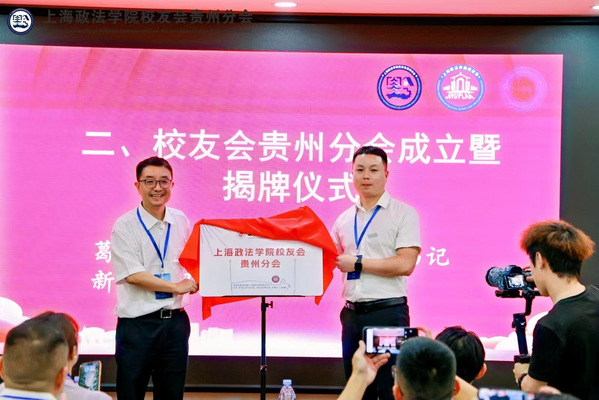2025年7月6日,上海政法学院校友会贵州分会正式成立。在北京市京师(贵阳)律师事务所多功能厅举行的成立仪式上,校党委书记葛卫华,北京市京师(贵阳)律师事务所高级权益合伙人胡勇军、黄名杨,以及部分校友会代表、特邀嘉宾,学校部分二级学院、职能部门相关负责人出席活动。