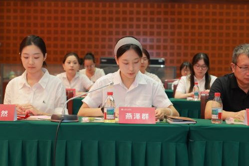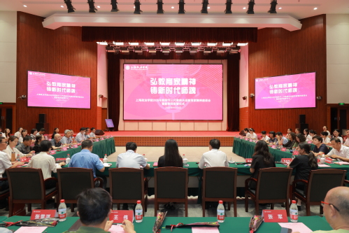 学报编辑部主任康敬奎、附属松江外国语学校代修勇围绕新时代弘扬教育家精神、落实立德树人根本任务,分享自己在工作岗位上的实践与思考;经济法学院辅导员马蔚然、附属青浦崧淀中学燕泽群作为新进教师代表,畅谈对教育家精神的向往与投身立德树人事业的实践与感悟,表达努力“谱写华章”的青春宣言。