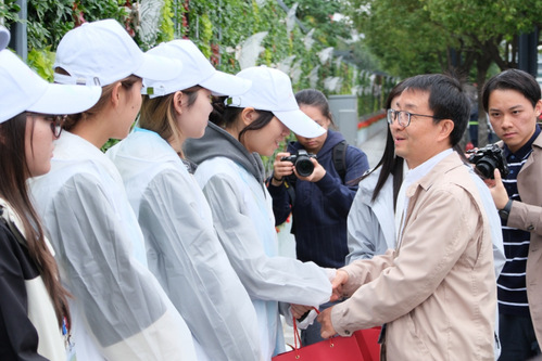 随后,校领导与青浦区领导共同前往馆外志愿服务点位,从盈港东路公交站至诸光路西登录厅天桥,沿途步行慰问在岗的16名志愿者。慰问期间,校领导与“小叶子”们亲切交流,询问岗位工作情况,对志愿者的辛勤付出给予了充分肯定并贴心嘱咐大家关注天气情况、注意做好保暖措施。校领导鼓励“小叶子”们继续发扬“奉献、友爱、互助、进步”的志愿者精神,展现上政青年昂扬向上的精神风貌。