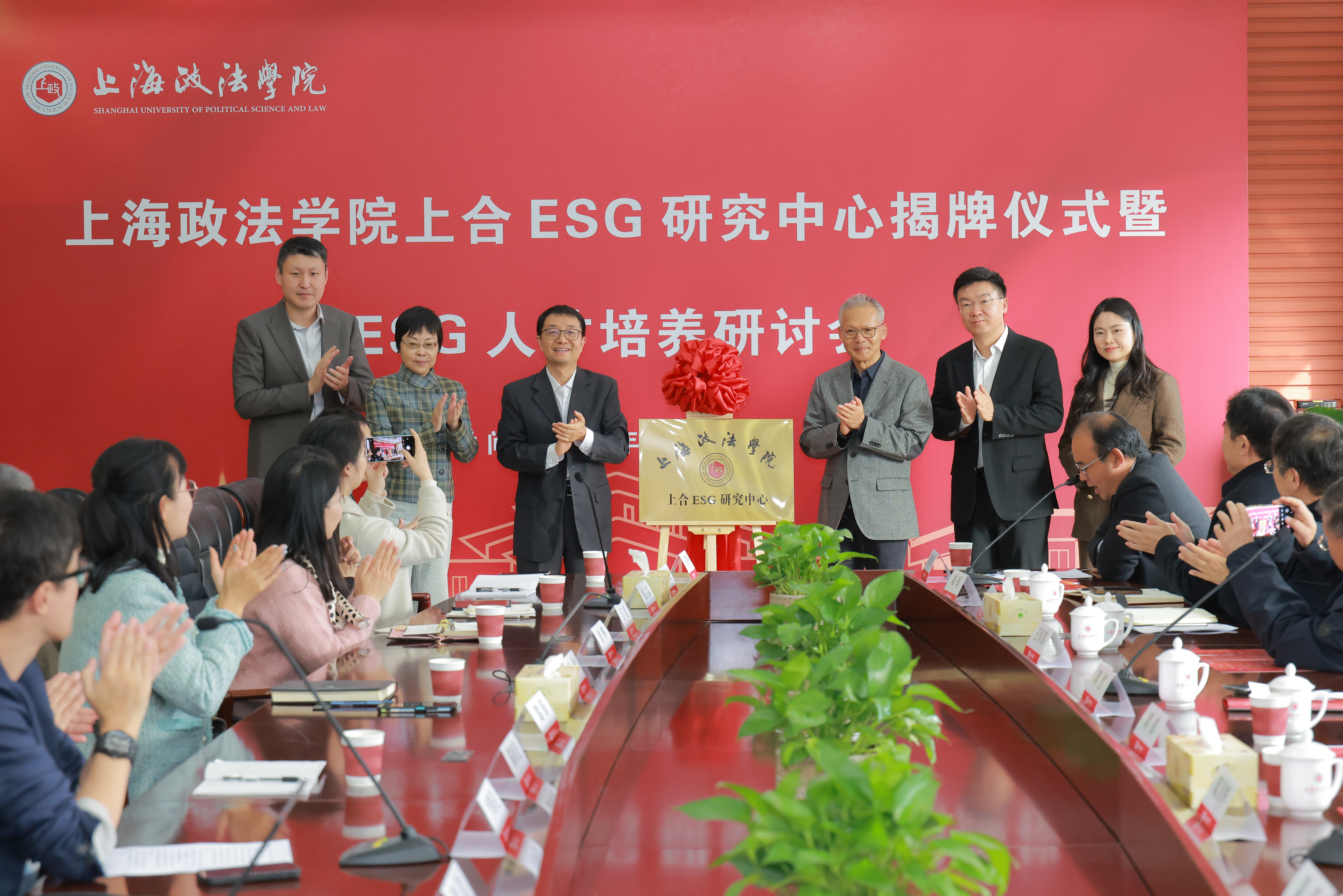 12月12日下午,上海政法学院上合ESG研究中心(以下简称“中心”)揭牌仪式暨ESG人才培养研讨会在普陀校区举行。来自政府部门、科研院所、企业及社会组织的百余位代表齐聚一堂,共同见证中心成立,并围绕ESG领域的学术研究、人才培养与实践应用展开深入研讨。