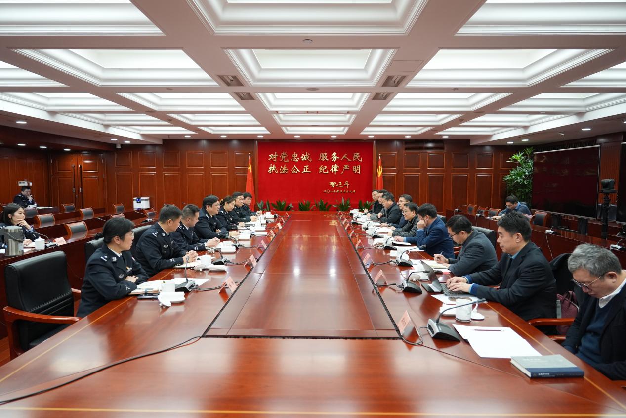 罗震川副局长对葛卫华书记、郑少华校长一行的到访表示热烈欢迎,并详细介绍了上海公安在维护城市安全稳定、推进执法规范化建设、服务经济社会高质量发展等方面的实践成效与面临的新形势新挑战。他指出,新时代公安工作的新任务对民警法律素养、专业能力和群众工作水平提出了更高标准,上海政法学院在法学教育、学术研究、法治人才培养等领域积淀深厚、优势突出,双方合作基础坚实、前景广阔他表示,期待与学校深化务实合作,重点聚焦民警法治培训、涉警舆情法律应对、执法制度共建等关键领域,携手提升公安工作法治化水平和执法公信力,为上海建设更高水平的平安城市、法治城市贡献合力。
