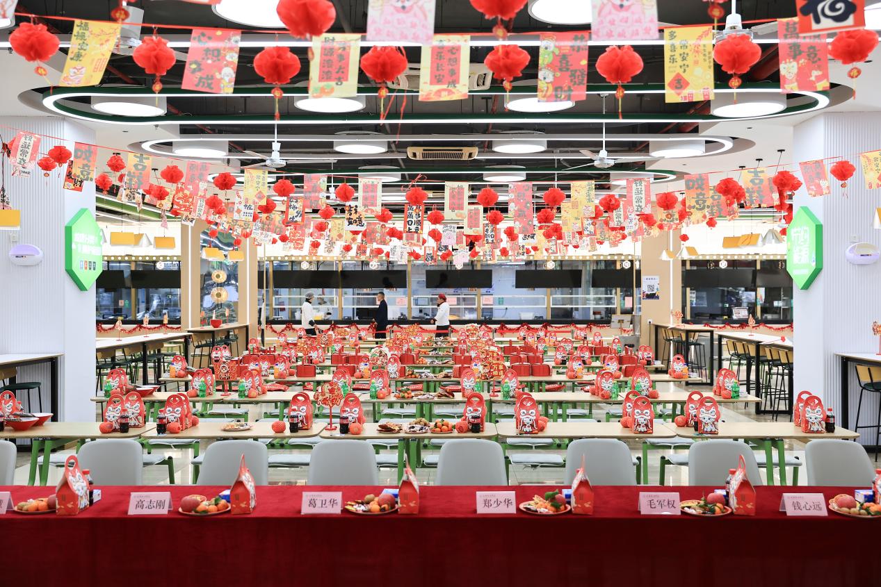 团圆宴仪式结束后,新春团圆宴正式开席,热腾腾的菜肴摆满餐桌,校领导、佘山镇领导与师生、工作人员围坐畅谈、互道祝福,餐厅内暖意融融、年味浓郁。此次迎新春团圆宴,不仅让留校师生和坚守岗位的工作人员感受到了新春的祥和与团圆的美好,更彰显了上政校园的温暖浓情,凝聚了校地同心、师生同行的奋进力量。