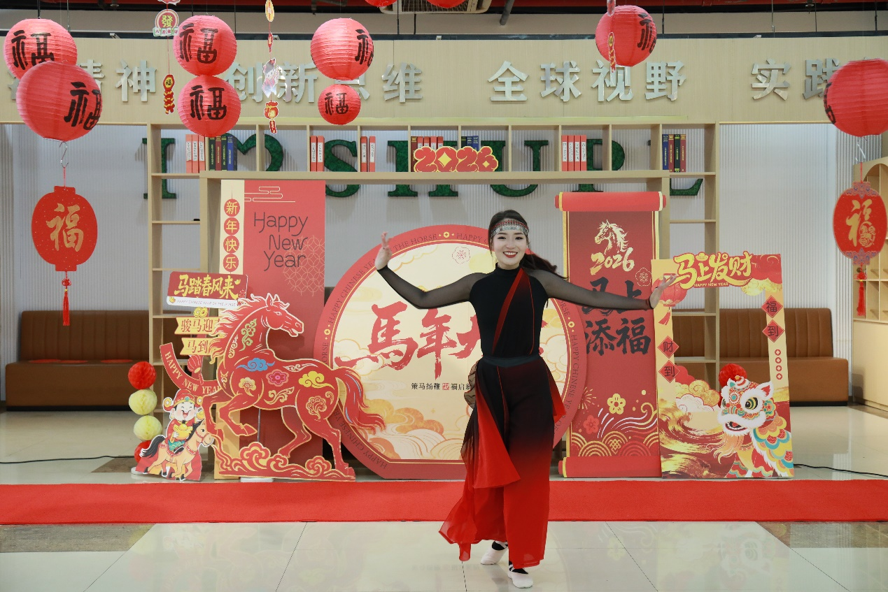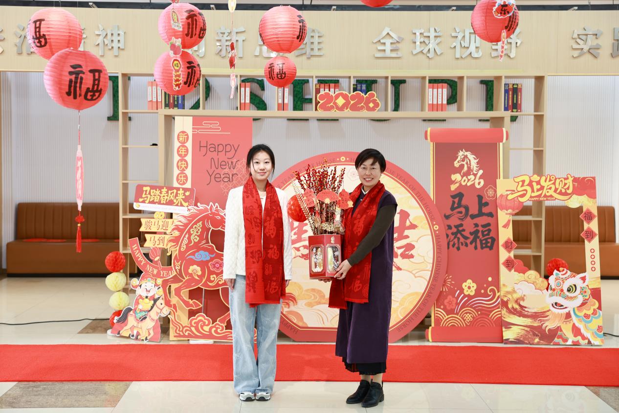 校党委书记葛卫华致新春贺词,代表学校向留校师生、坚守岗位的工作人员致以诚挚的新春祝福,向长期关心支持学校发展的佘山镇领导表示衷心感谢。他表示,春节是中华民族的传统佳节,愿每一位学子都能在上政体会到“此心安处是吾乡”的归属感。葛卫华书记高度肯定了全校教职工在教书育人、科研创新、校园保障等岗位的无私奉献和锐意进取。他寄语全体上政师生在“野马浜”这片土地上同心同向,教职工以“策马扬鞭” 的干劲深耕本职,同学们拿出“一马当先”的闯劲,共作担当时代大任的“千里马”。最后,葛卫华书记和师生们共同祝福伟大祖国繁荣昌盛,祝愿上政事业策马奔腾。