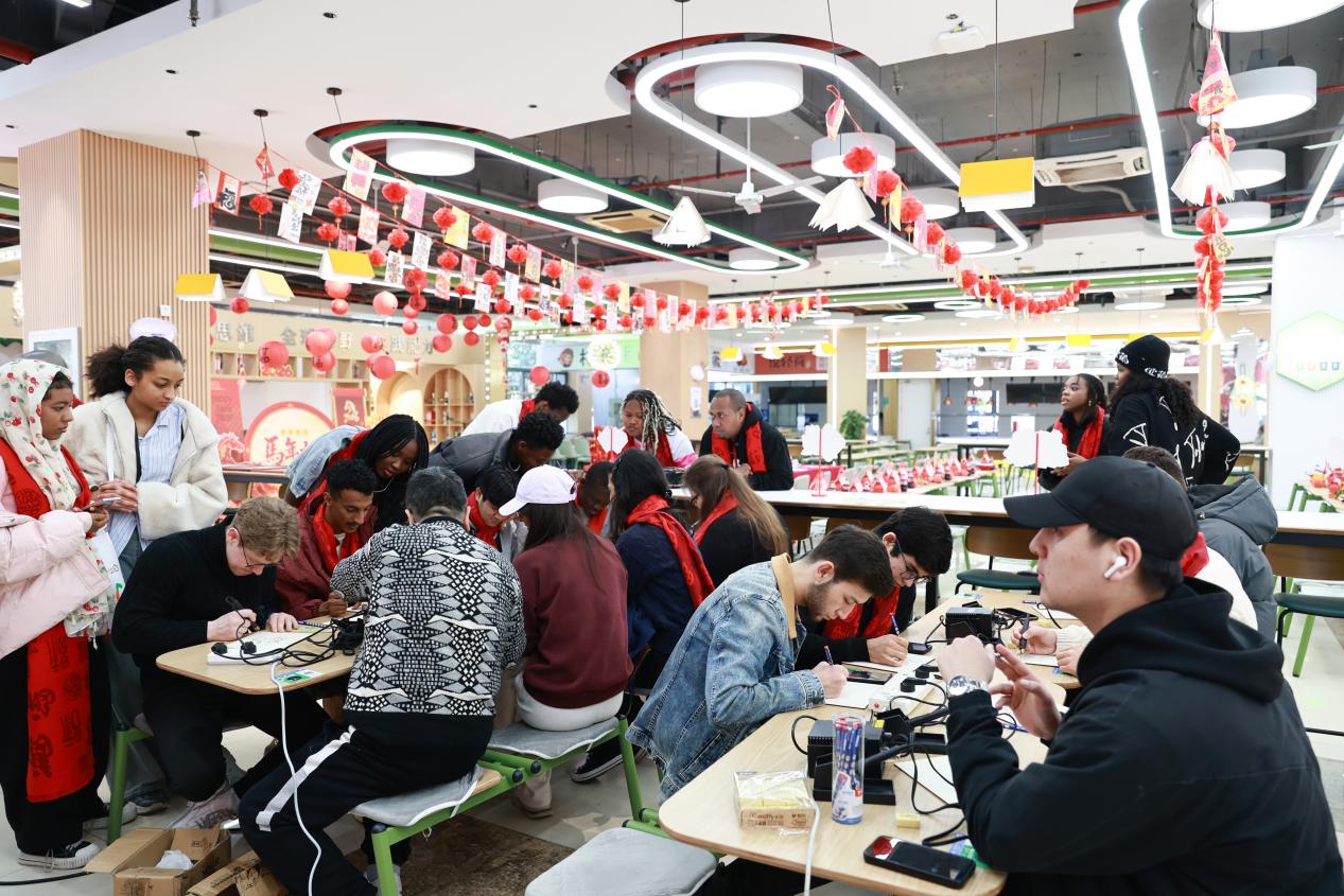 团圆宴仪式现场,留校学生带来了精彩的歌舞和诗朗诵等文艺表演,诉说着在上政的团圆与温暖,打动了现场每一个人。大家热情地参与“非遗烙画进校园”活动,跟着佘山镇非遗传人现场学习、亲手体验烙画技艺,在火与木的交融中感受中华传统文化的匠心与魅力。师生一起迎新春写春联、拓“福”字、包饺子,大家挥毫泼墨,将新春期许凝于红纸春联,把天南海北的思念与牵挂拓进祝福中,欢声笑语间,满是团圆的温馨。
