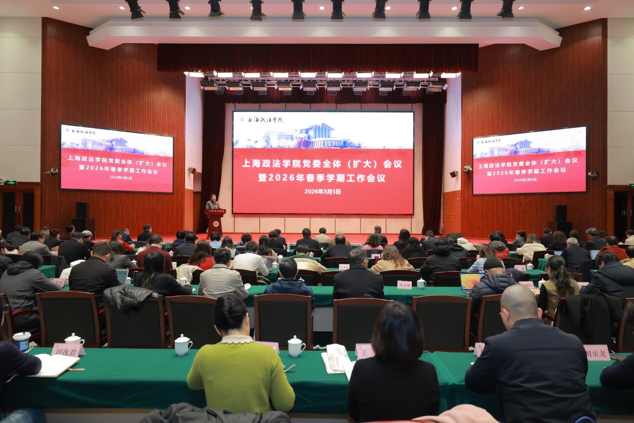3月5日,上海政法学院党委全委会(扩大)会议暨2026年春季学期工作会议在中国—上海合作组织国际司法交流合作培训基地召开。会议以强化党的全面领导、统筹党政工作部署、凝聚全校发展共识为核心,一体部署政治引领、战略谋划与年度重点任务,为学校“十五五”高质量发展和年度目标任务落地落实奠定坚实基础。校党政领导班子成员、党委委员、纪委委员,全体中层干部,附属学校负责同志,以及教授、民主党派、青年教师等各方面代表出席会议。校党委副书记、副校长高志刚主持会议。