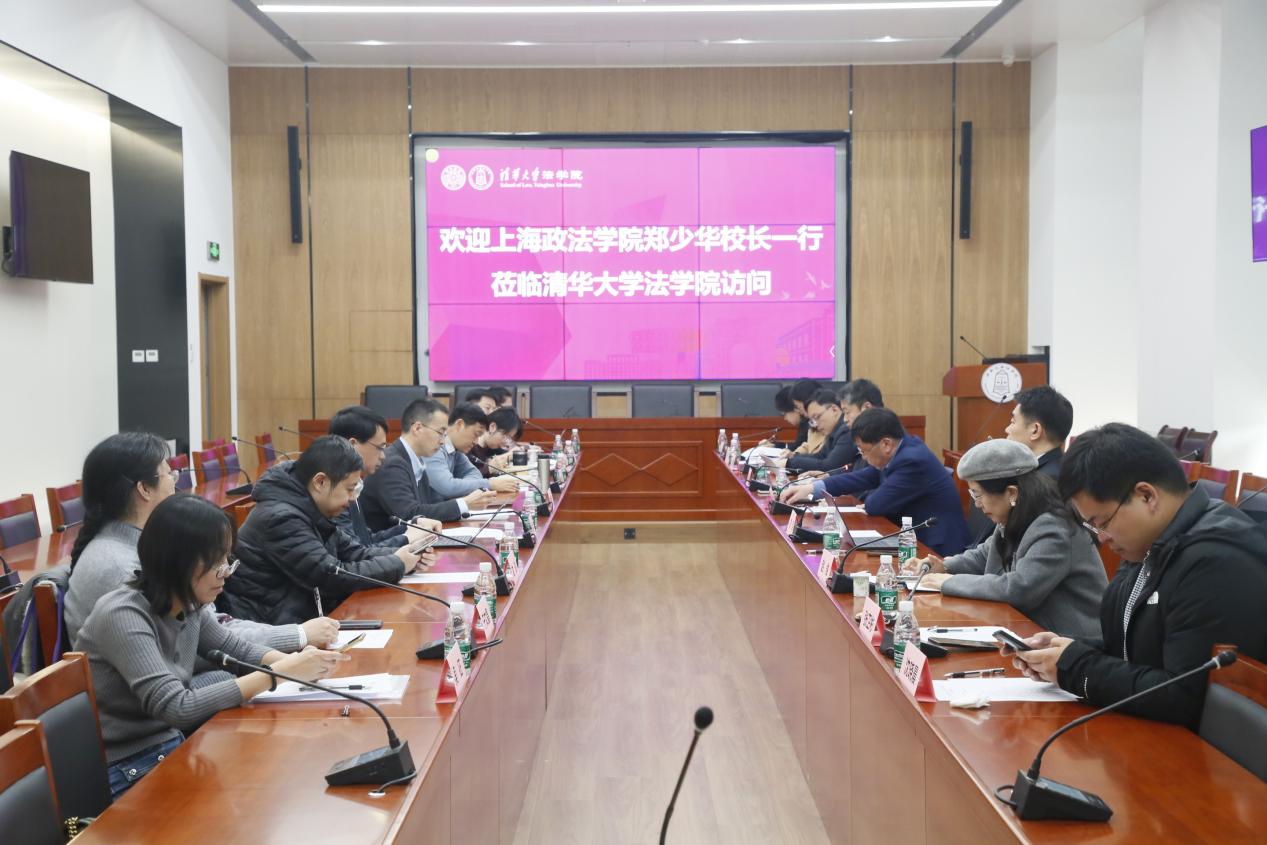 在清华大学,法学院院长崔国斌、党委书记邓海峰热情接待郑少华校长一行,并介绍了学院在计算法学、知识产权、国际仲裁及LL.M.等特色项目建设上取得的显著成绩,特别是在进一步探索法律与科技深度融合,积极回应数字时代的法治挑战;着力加强涉外法治人才培养,全面提升国际化办学水平;推动法学与社会科学交叉融合,拓展法治研究的广度与深度等方面的重点工作与成效。郑少华校长介绍了学校近年来在学科发展、人才培养、社会服务等方面取得的进展。双方围绕教学改革、科技赋能法学教育、法学期刊管理等方面合作具体事项进行了务实交流,为进一步提升合作层级共同探讨了更多切实可行的合作模式。