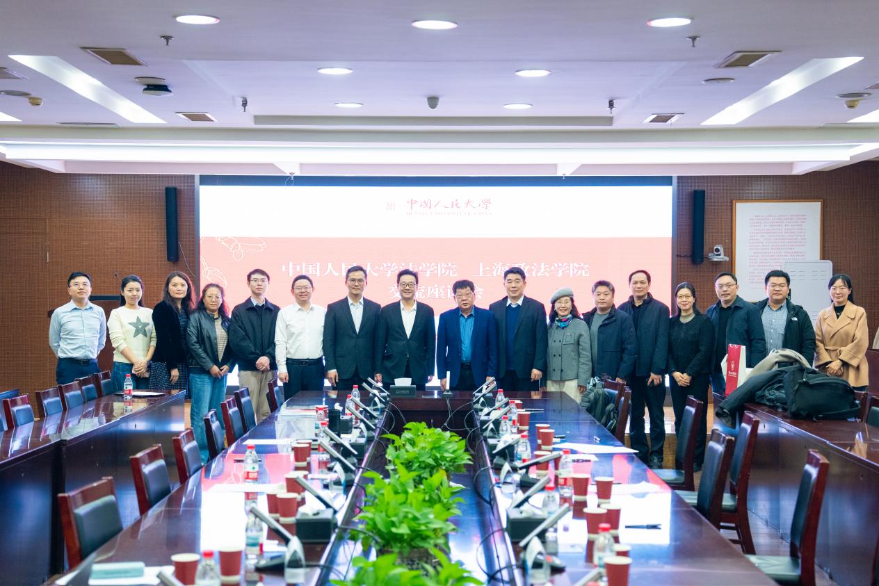调研中国人民大学期间,法学院院长杨东对郑少华校长一行的到访表示欢迎,详细介绍了学院近年来的发展成果及学科布局的最新动态,重点介绍了以全球法学教育合作联盟为代表的常态化学术网络和资源共享合作机制的建设成效。郑少华校长介绍了学校秉持“政法底色、城市特色、上合助力、数智赋能”的办学定位,近年来服务国家战略、服务城市发展的新进展。双方就未来深化法学教育改革、创新法治人才培养机制、共建高水平教学实践基地与研究平台进行了深入务实的探讨,对法学职业培训、上海特色法学资源开发等具体项目,明确了下一步合作的路线图与时间表。
