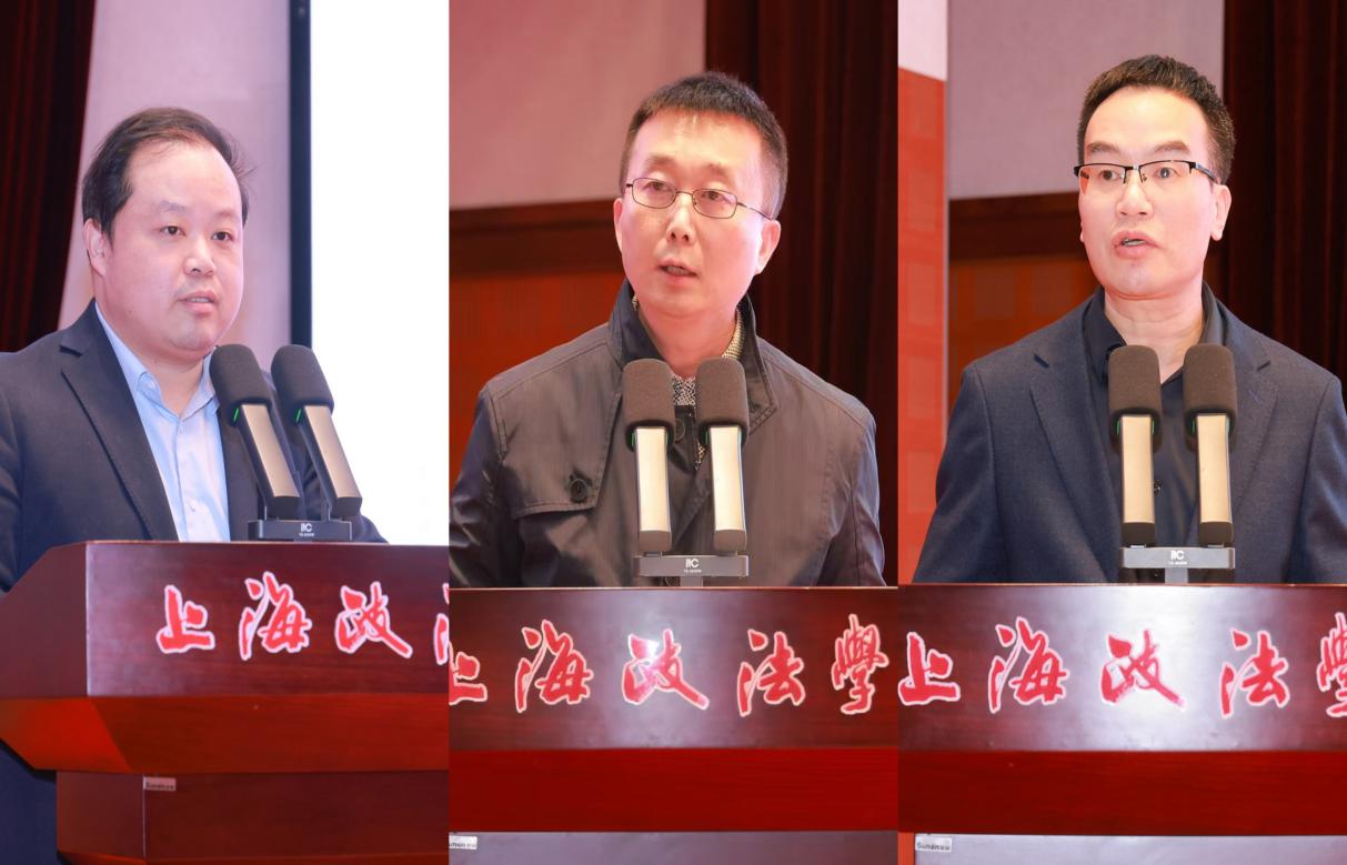 上海市司法局党委委员、副局长刘言浩,上海市生态环境局党组成员、副局长余飞麟,上海政法学院党委书记葛卫华,上海政法学院校长郑少华共同为“上海政法学院生态环境法典评注中心”揭牌。上海市法学会党组书记、会长姜平,上海市高级人民法院副院长王光贤,上海市人民检察院党组成员、副检察长荚振坤和上海政法学院特聘教授王树义上台共同见证了这一重要时刻和崭新篇章的开始。