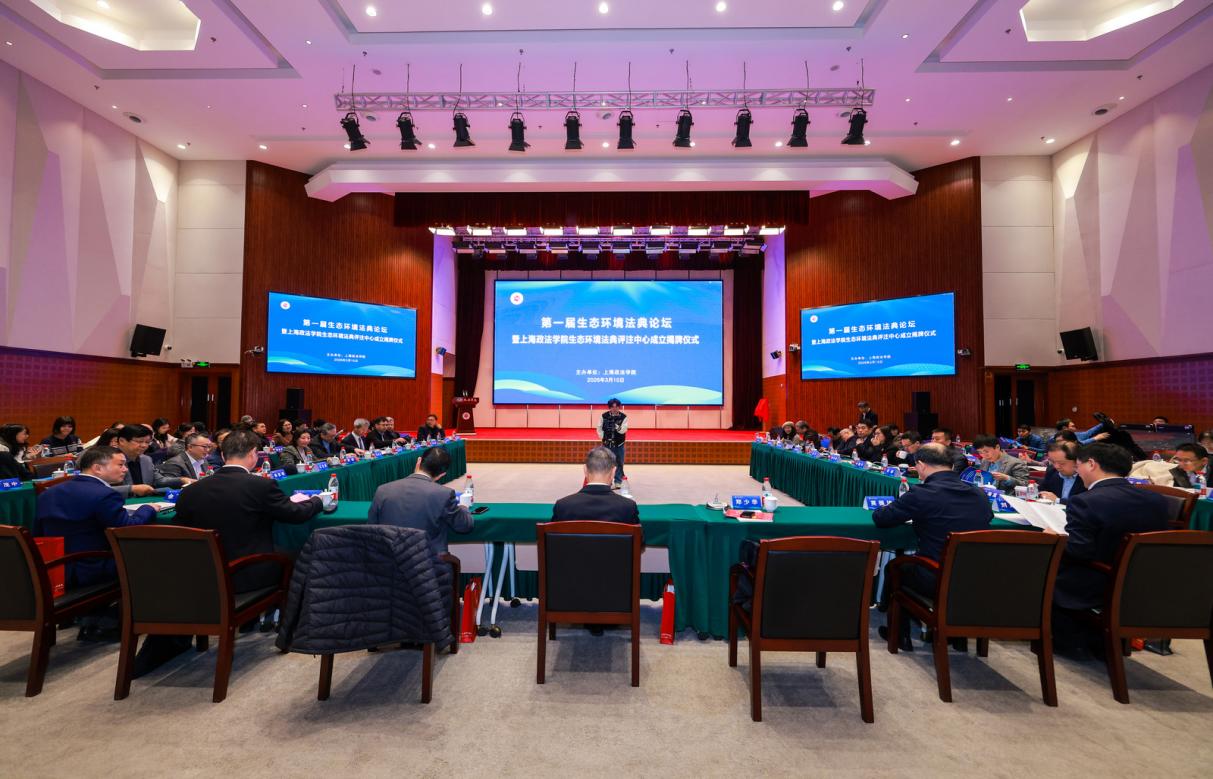 刚刚闭幕的十四届全国人大四次会议表决通过了《中华人民共和国生态环境法典》,这是我国生态文明建设迈向制度化、体系化的关键一步,是习近平生态文明思想和习近平法治思想在制度层面的生动实践。为深入贯彻落实习近平生态文明思想和习近平法治思想,用法治护航美丽中国建设,上海政法学院于3月15日举办第一届生态环境法典论坛,来自上海市法学会、上海市高级人民法院、上海市人民检察院、上海市司法局、上海市生态环境局以及沪内外高校的40余位专家学者和实务工作者参加论坛,共同见证“上海政法学院生态环境法典评注中心”正式揭牌。