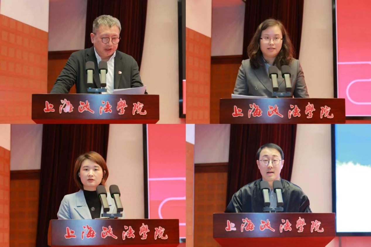 交流发言环节,上海纪录片学院(法治宣传教育学院)院长郭炜华分享了“有能量、有手艺、有泥土”的实务导向人才培养经验,介绍了推进学生高质量充分就业的工作思路。经济法学院(丝绸之路律师学院)辅导员席章瑾讲述了用心用情做好学生就业指导的育人故事。知恒律师事务所执行主任金丹,中国工商银行上海长三角示范区支行党委书记、行长程佳敏充分肯定了我校人才培养质量,并表示将持续深化校企合作,共育英才。