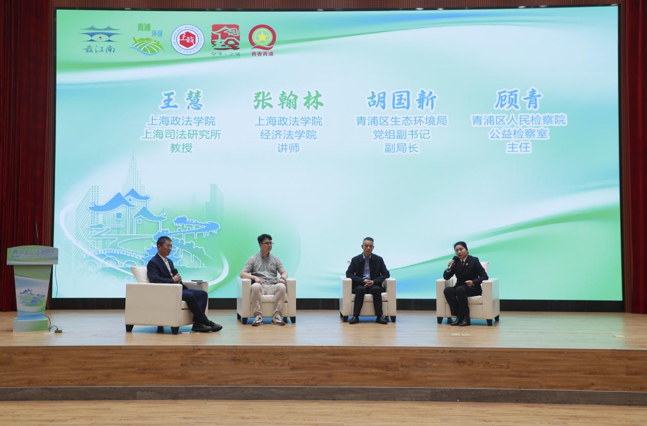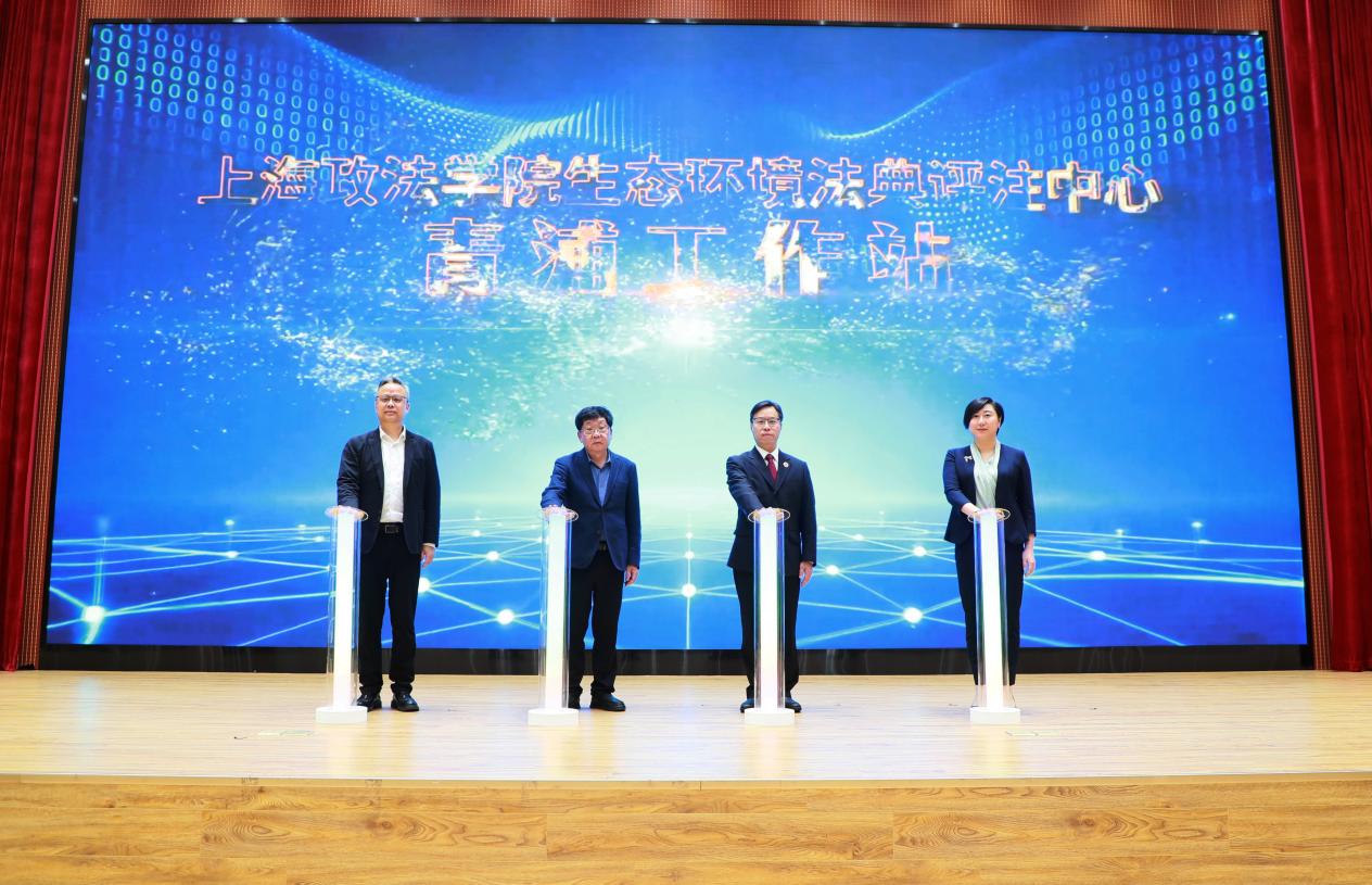 活动中,上海政法学院、青浦区人民检察院、青浦区生态环境局、金泽镇政府四家单位主要领导共同为“上海政法学院生态环境法典评注中心-青浦工作站”揭牌。