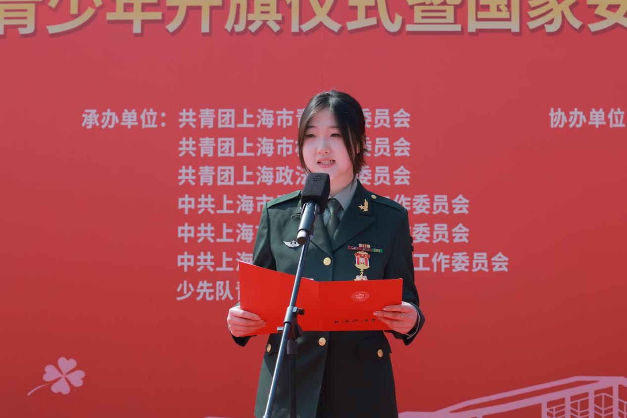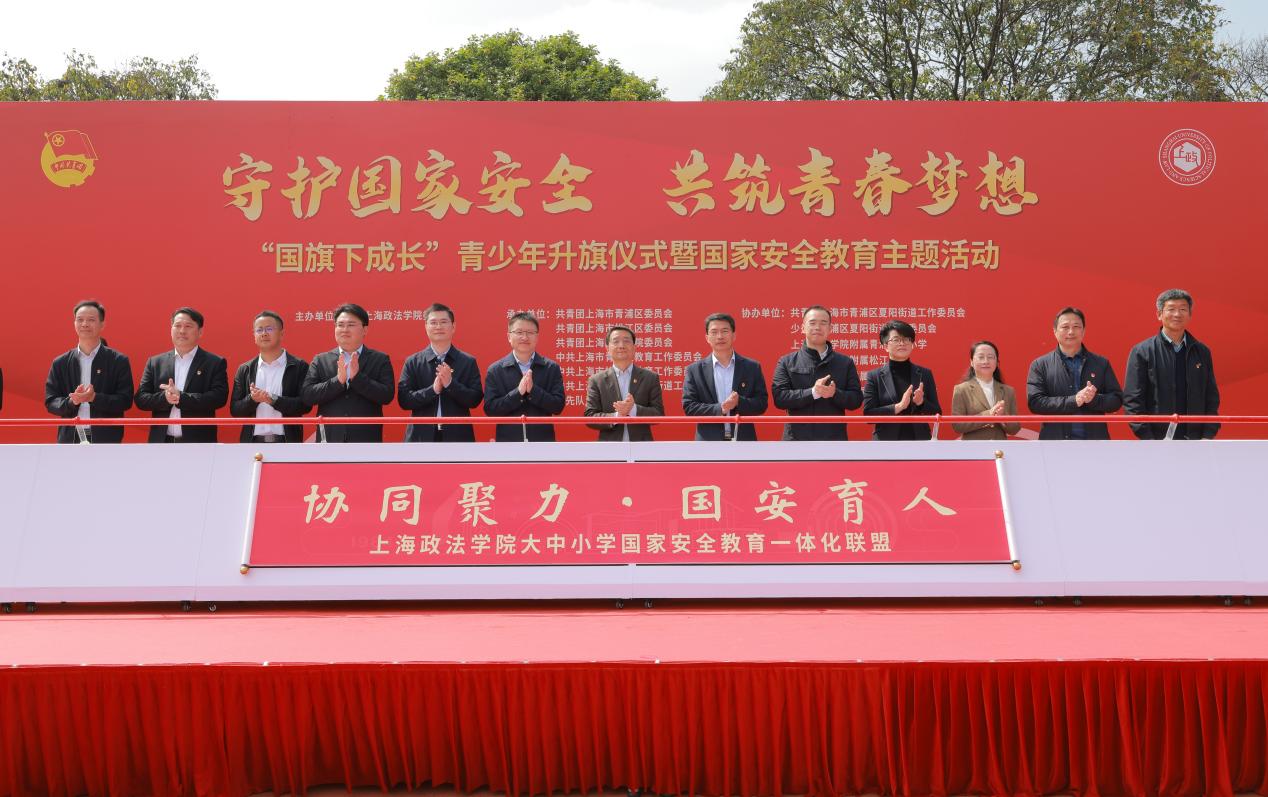 4月15日,在第十一个全民国家安全教育日到来之际,为深入学习贯彻习近平总书记关于国家安全的重要论述,全面践行总体国家安全观,贯通大中小学国家安全教育链条,引导广大青少年坚定国家安全理念、强化安全责任担当,以青春挺膺担当守护国家安全、共筑强国之基,“守护国家安全,共筑青春梦想”——“国旗下成长”青少年升旗仪式暨国家安全教育主题活动在上海政法学院田径场举行。
