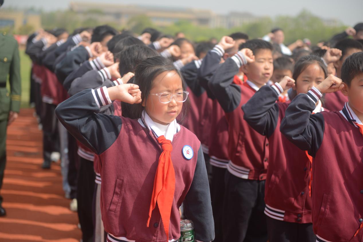 在退伍军人学生代表领誓下,全体学生高举右拳、庄严宣誓。铿锵誓言响彻全场,彰显新时代青少年维护国家安全的坚定决心与使命担当。