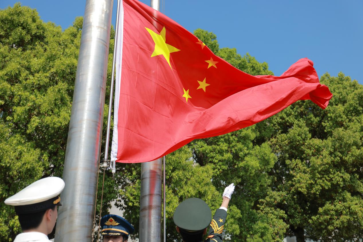上午9时,庄严的升旗仪式正式开始。上海政法学院国旗护卫队精神抖擞、步履铿锵,在全场肃立注目下,五星红旗冉冉升起、迎风飘扬,全体师生在和煦的晨光中共沐国旗荣光,共抒爱国情怀。