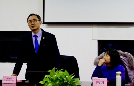 1211日,国际交流处、国际法高原学科邀请“司法圆桌会议”嘉宾、中华法学会会员、交通大学(台湾)科法所蔡志宏博士于B2-110举办主题为“科技整合教育对法律事务工作启发”的讲座,本次讲座由法律学院副教授梁玥主持,国际法学院、法律学院部分研究生和本科生参加。