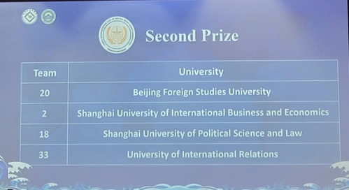 该项比赛选取国际海洋法热点问题,模拟适用《联合国海洋法公约》第十五部分规定的《联合国海洋法法庭规约》、《国际法院规约》和《联合国海洋法公约》附件七仲裁程序,解决有关争议方之间的海洋争端。经过一轮书状竞赛评审,中国政法大学、海南大学和上海政法学院等16支代表队顺利晋级进入庭辩环节。本次庭辩比赛采用线下进行方式。在庭辩比赛环节,我校代表队经过与上海对外经贸大学和宁波大学代表队激烈交锋,斩获二等奖。
