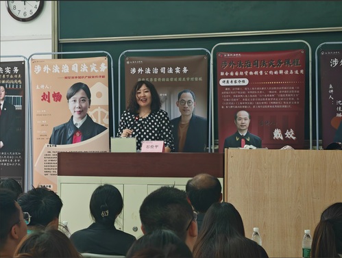 石俭平对《涉外法治司法实务》课程的正式开课致以祝贺,她首先回顾了我校及国际法学院近年来在涉外法治人才培养方面取得的成果,特别是自我校入选全国首批法律硕士(涉外律师、国际仲裁)研究生培养项目、获批上海市高校涉外法治人才培养教育基地和教育部涉外人才培养协同创新基地以来,国际法学院始终将深化学科内涵、完善人才培养模式、优化课程体系、培养卓越的涉外法治人才作为重要使命。同时,她感谢浦东法院对我校人才培养工作的大力支持,作为法律职业共同体,浦东法院在涉外法治人才培养方面采取了多项创新举措,例如通过启动“燎原”院校合作项目,与我校共建涉外法治司法实务课程等。她表示,此次《涉外法治司法实务》课程的开设具有重要意义,不仅体现在学术知识的拓展上,更关乎学生未来职业发展的广阔前景、国际视野的塑造以及法治理念与国际规则的深度融合,相信该门课程将成为我校的特色实务课程,为我校的教学改革和高素质、实务性的涉外法治人才培养奠定重要的基础。