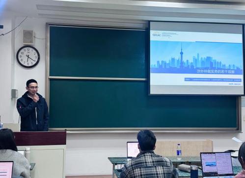 讲座伊始,李挺伟以上海国际仲裁中心发展历程为引,系统梳理了中国仲裁业务的历史沿革。通过机构建设、业务拓展等维度,完整呈现了我国仲裁体系的发展脉络。在仲裁规则讲解部分,主讲人围绕SHIAC仲裁规则的迭代更新展开论述,使同学们深刻的理解了仲裁规则的意义——作为仲裁机构核心竞争力的具象载体、作为机构服务承诺的书面凭证、作为当事人程序权利的制度保障。针对仲裁实务关键要素,李挺伟通过典型案例着重剖析了仲裁协议的法律效力。其强调仲裁协议构成仲裁程序的根本依据,并结合具体司法实践,引导听众建立起对仲裁协议效力认定的系统性认识。
