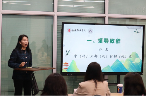 江晨在致辞中表示,涉外法治契合国家战略需求,当前上海涉外法治人才缺口显著,发展空间广阔。上政依托上合基地等平台,为学生提供了坚实支撑。她勉励新生珍惜入学前五个月的时间,关注国家法治动态,结合兴趣做好规划。